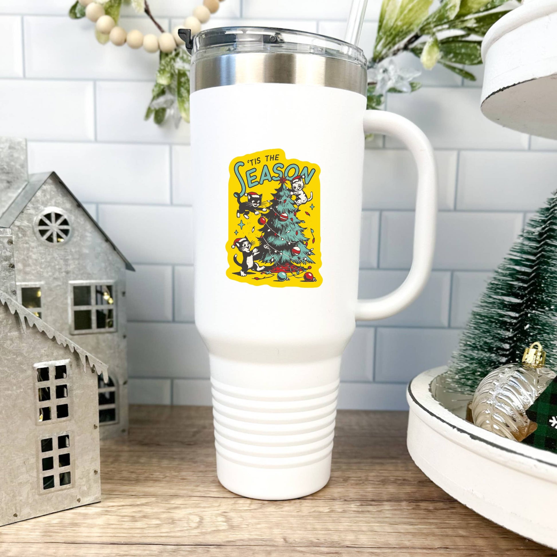 Holiday Christmas Kitty Cat Pet High Quality Vinyl Sticker